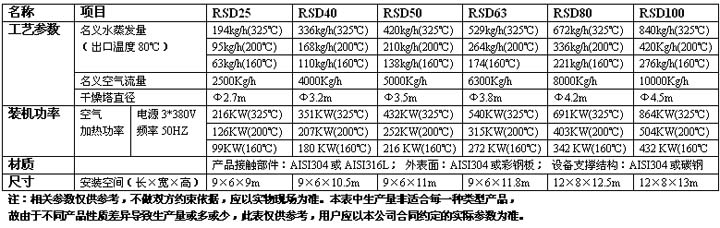 RSD系列通用型離心噴霧干燥機技術參數表: